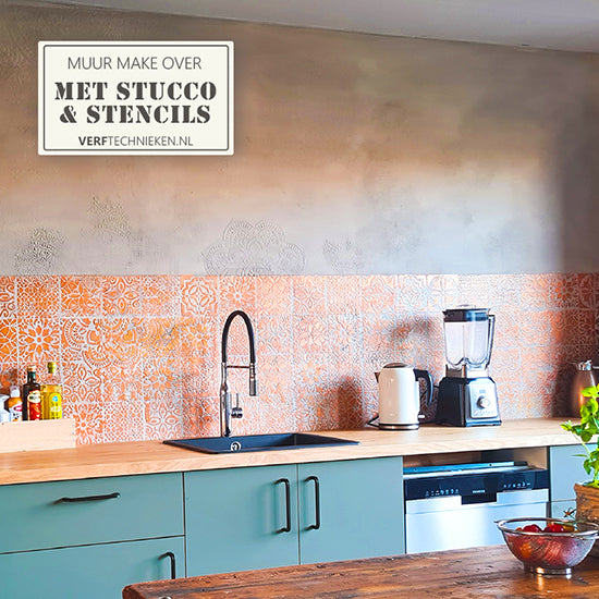 Op ons blog lees je hoe een hopeloze keukenmuur met stucco en stencils een creatieve low budget make over kreeg.